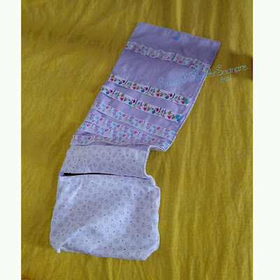 A parte questo, in questo periodo ho rifatto il portamollettine per capelli. Ho deciso di approfittarne per sperimentatare il mio nuovo piedino per lo sbieco.